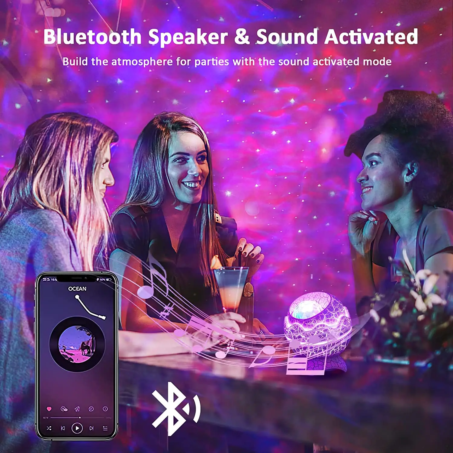 * 【Bluetooth Music Speaker/Player With Dynamic Rhythm】: After Connected the device via Bluetooth to turn it into a music player, play your favorite music. The lights will flash and dance following the music rhythm. We can open a small music party with our kids