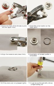 【Metal Material】 Our thickened five-claw buckle set is made of stainless steel material, the pliers are made of stainless steel, high hardness, comfortable to hold, environmentally friendly and durable 【Wide Application】 This set of sewing buttons is suitable for DIY making projects such as sewing custom garments such as bags, clothing, shoes, etc.